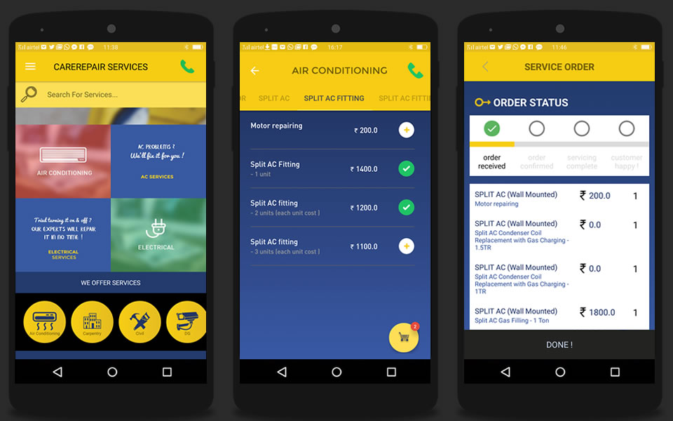 One solution to all your home & office care & repair needs. With just two steps of providing your contact numbers & address avail Air Conditioning, Electrical, Plumbing, CCTV, Pumps & Filteration, Pest Control, Swimming Pools, Gardening & Horticulture, Carpentry, Painting, you want a service & we are there for you. Efficient & quality service delivered at your door steps by highly experienced professionals.