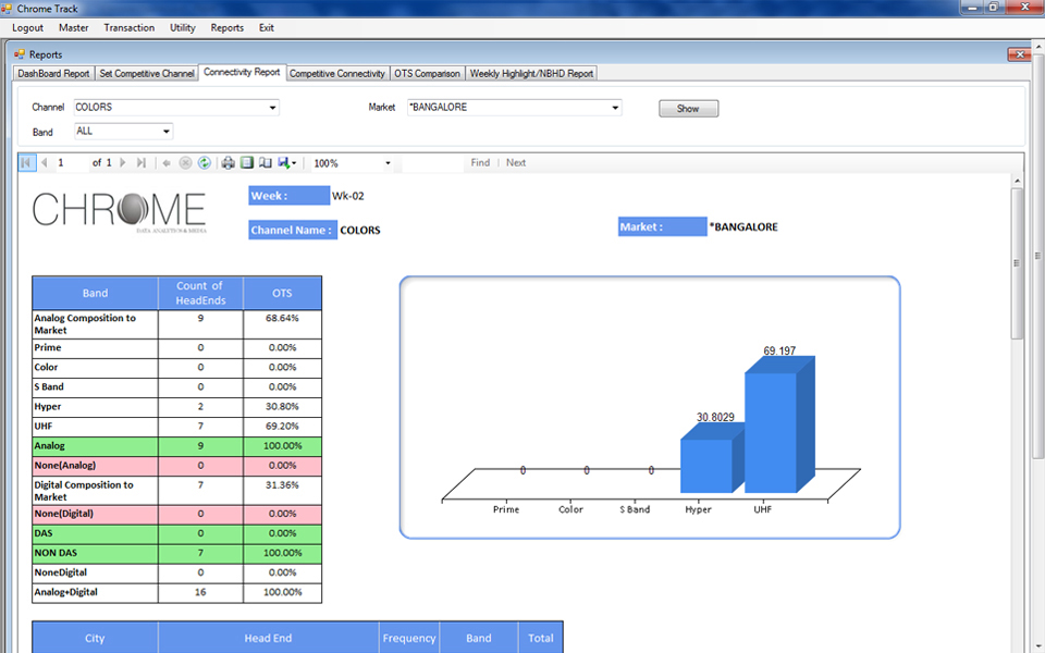 This was a desktop application developed for a media house .This application enabled the client to send, market competitive data and analysis of the viewerships of various TV channels by collecting data from all the cable operators present across India. The application generates graphical dynamic reports based on the data fed by the user.