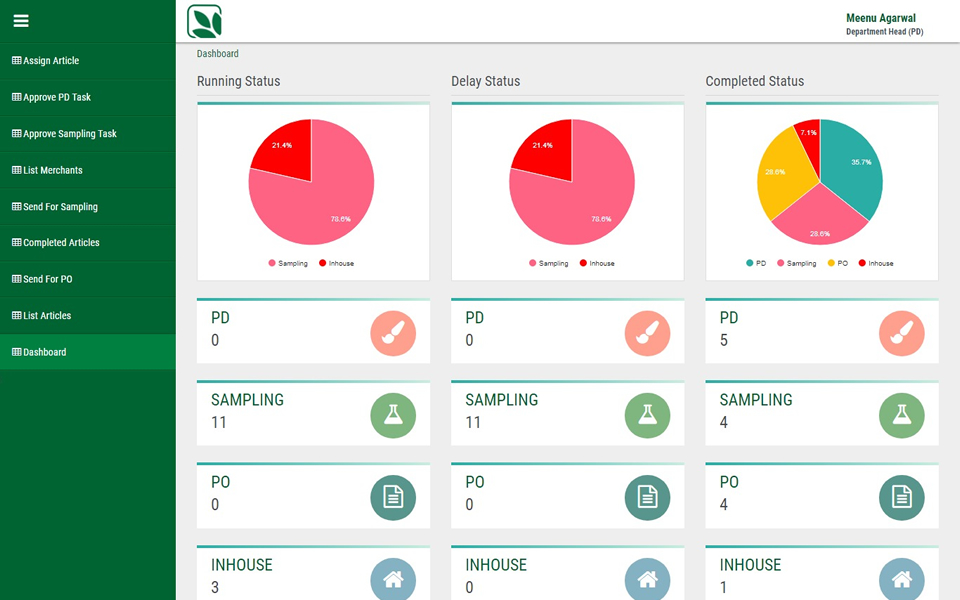 This application is created for Woodland Aero Club, manufacturer of Woodland products like Sports Shoes, Boots, Flip-Flops, Sandals, Slippers, Jackets, Cap, Gloves excreta. This software have feature like User Management, PD, Sampling, Sample Distribution, Request PO, Manage Merchants, Vendor Management, Quality, Pricing, Task Management (Assignment, Approval, Rejection), Production (in-house, out-source) and various masters and reporting tools for higher management